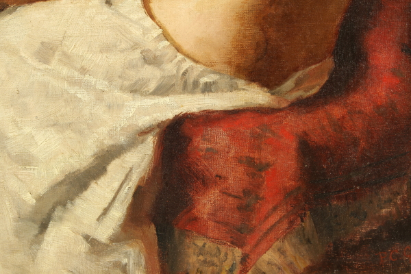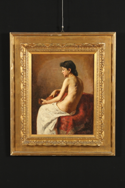 Olio su tela. Firmato in basso a destra. Restaurato e reintelato in epoca recente. In cornice senza vetro.