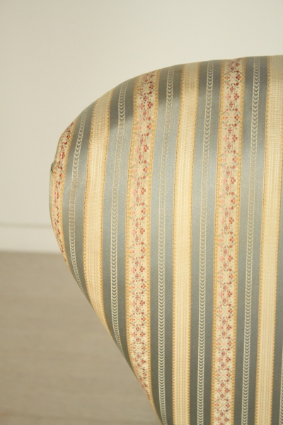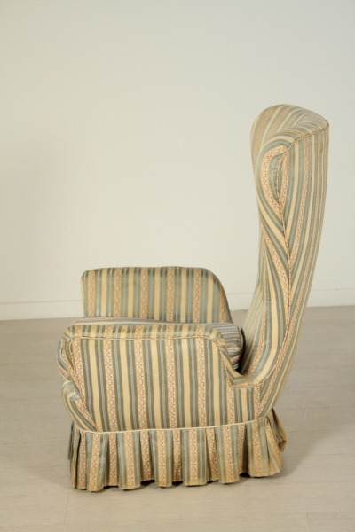 Poltrona; imbottitura a molle, rivestimento in tessuto. Buone condizioni, presenta piccoli segni di usura.