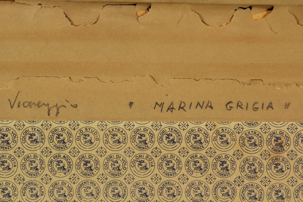 Tecnica mista su cartoncino telato. Firmato e datato in basso a destra. Al retro titolo, firma e data. Accompagnato da cartolina di una personale dell'artista.