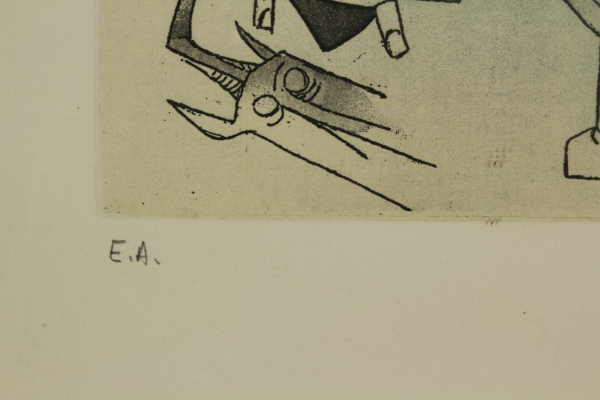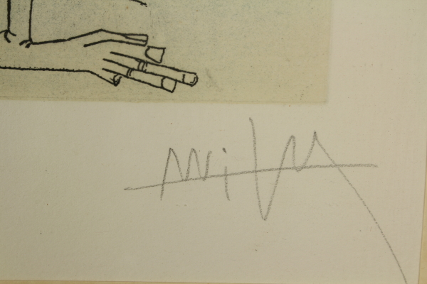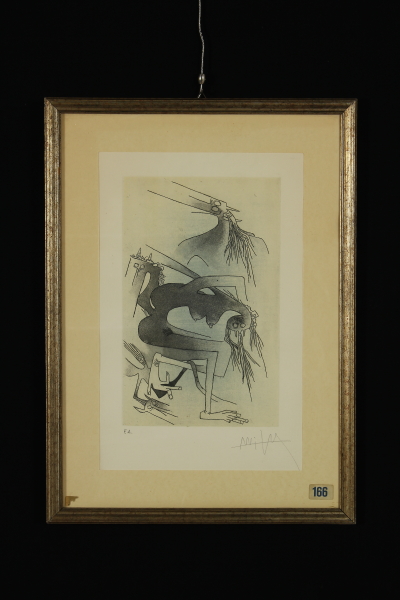 Stampa, acquatinta. Firmata in originale. Sul vetro, in basso a destra, etichetta con numero di probabile esposizione.