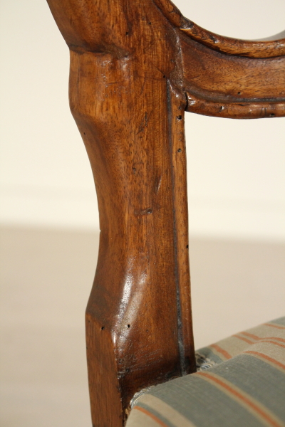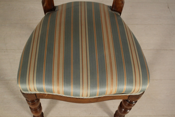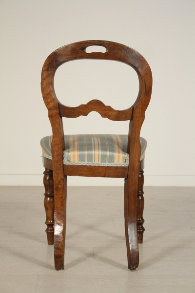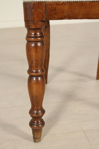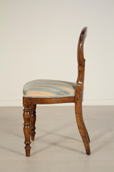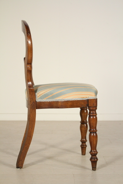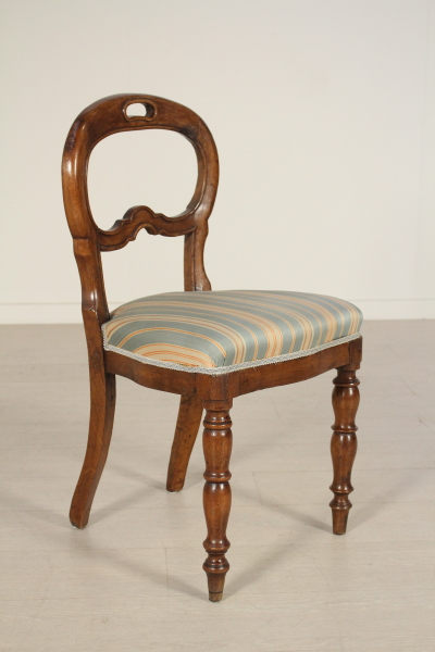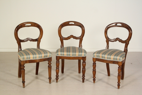 Gruppo 3 sedie. Gambe anteriori tornite, schienale a giorno, seduta imbottita.