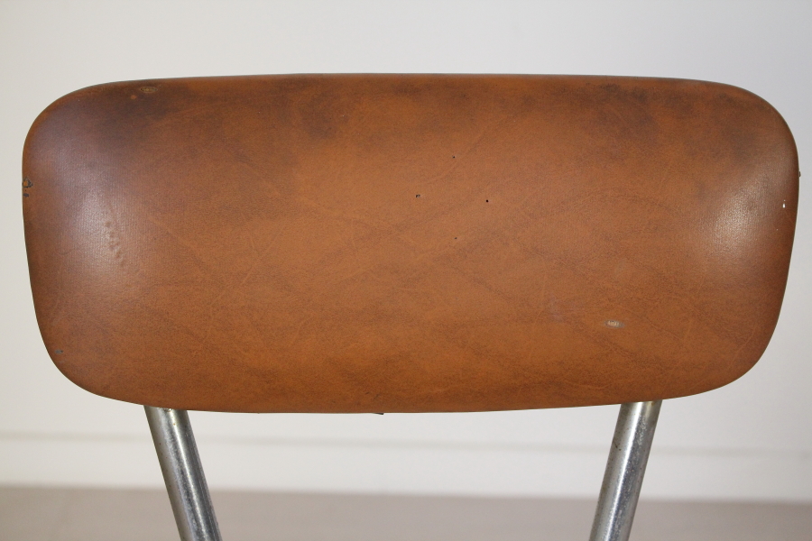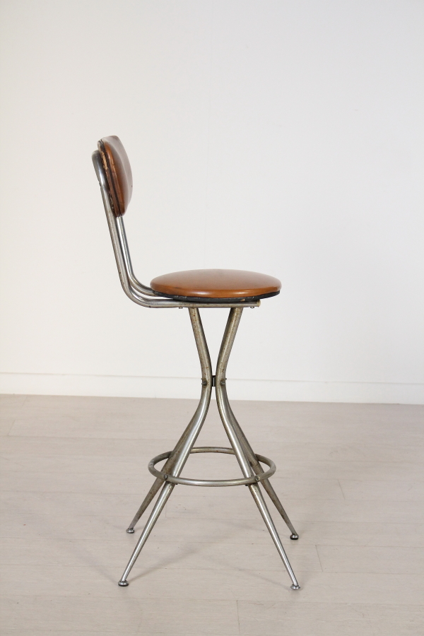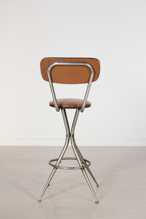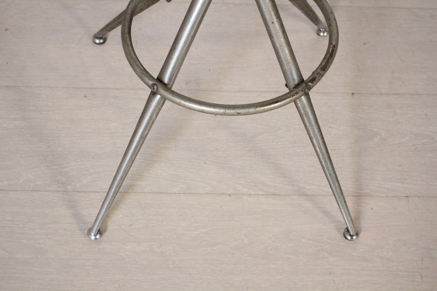 Sgabello anni 50-60. Sgabello in metallo cromato, imbottitura in espanso, rivestimento in similpelle. Buone condizioni, presenta piccoli segni di usura.