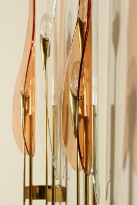 Coppia applique Dalia. Coppia applique Dalia Fontana Arte con diffusori in cristallo curvato e molato color trasparente e pesca. Struttura in ottone lucido.