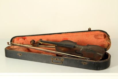 Segni d'epoca, ma in buone condizioni; necessita ovviamente di restauro da liutaio. All'interno etichetta cartacea "Ant. Monzino e Figli, via Rastrelli, 10".