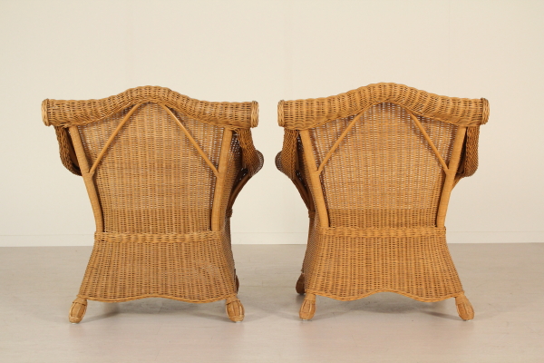 Coppia di poltrone; rattan e midollino. Buone condizioni, presentano piccoli segni di usura.
