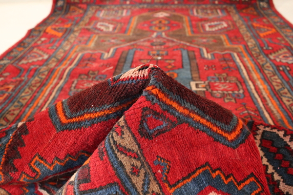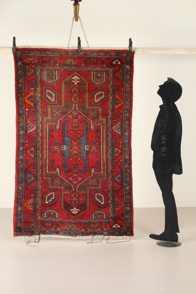 Tappeto zanjam iraniano, cotone e lana a nodo medio, fabbricato manualmente, richiede piccoli interventi.