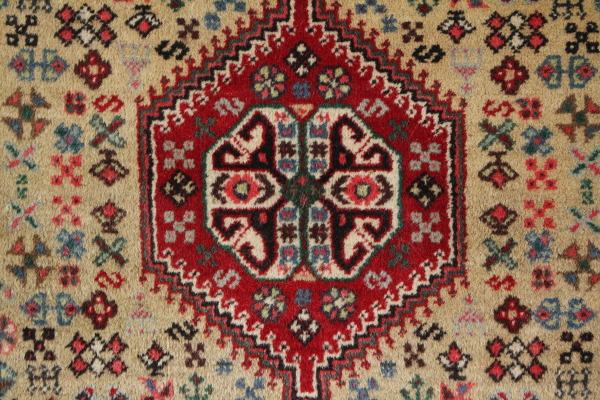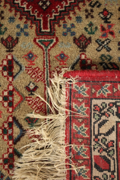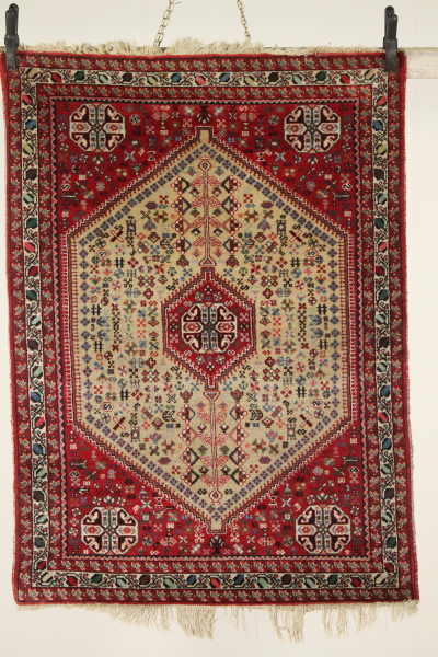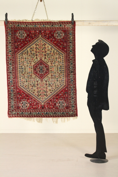 Tappeto shiraz iraniano, cotone e lana a nodo grosso, fabbricato manualmente, in buone condizioni.