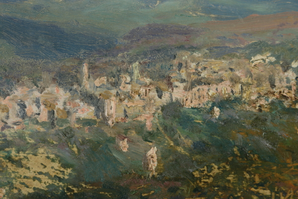 Olio su tavoletta, firmato e datato 1936 in basso a sinistra. Presentato in cornice con vetro.