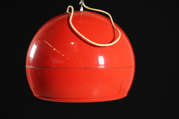 Lampada a soffitto ad inclinazione regolabile; materiale plastico. Buone condizioni, presenta piccoli segni di usura. Non è stata revisionata.
