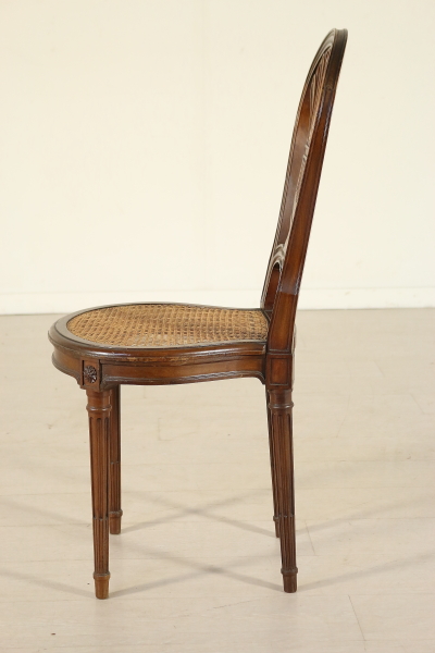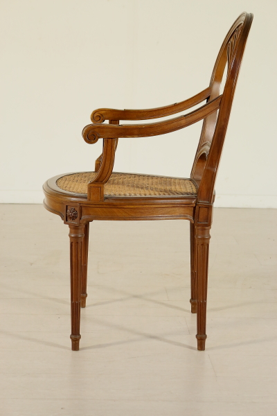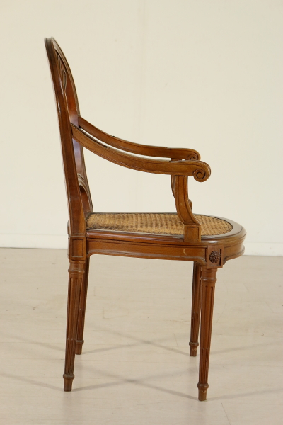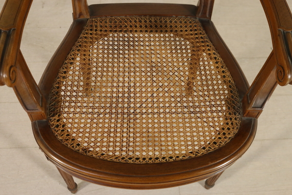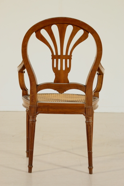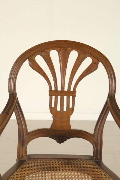 Schienale a giorno, seduta incannucciata. Poltrona (100x54x53), Sedia (97x44x44.5)