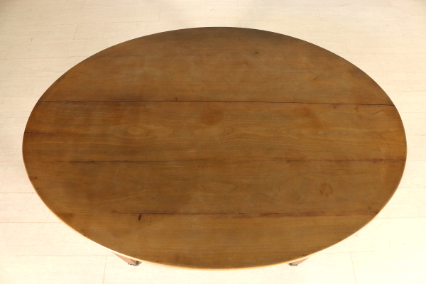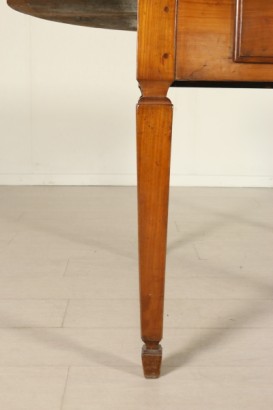 Gambe troncopiramidali e struttura originali, cassetto nella fascia. Piano ovale non pertinente.