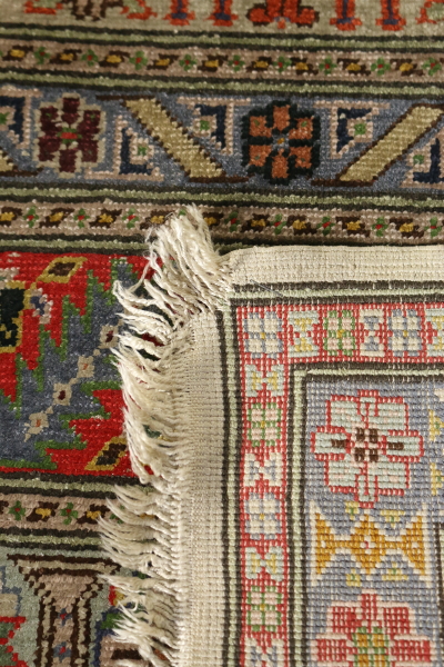 Tappeto Kaiseri turco, in cotone a nodo finissimo e vello in seta, fabbricato manualmente.