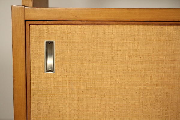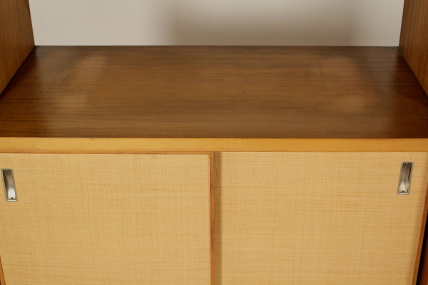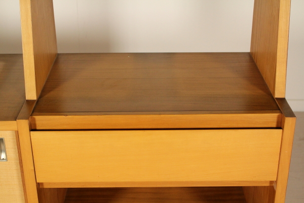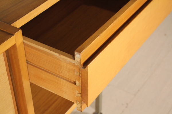 Mobile; legno impiallacciato mogano, tessuto, gambe in metallo. Buone condizioni, presenta piccoli segni di usura.