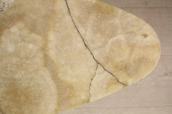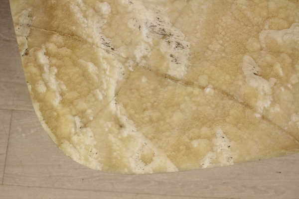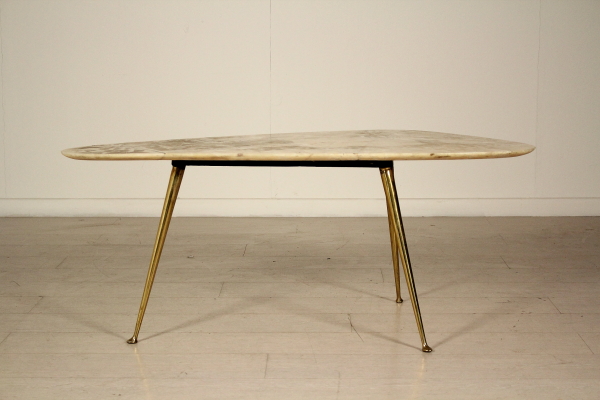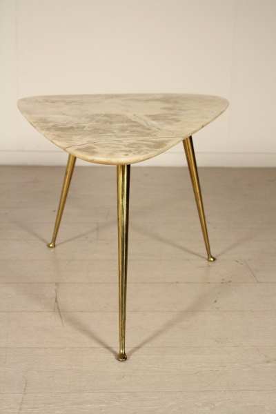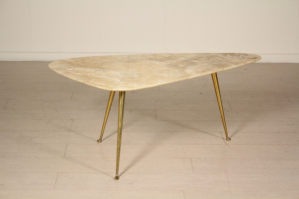 Tavolino da centro; ottone, marmo. Buone condizioni, presenta piccoli segni di usura.