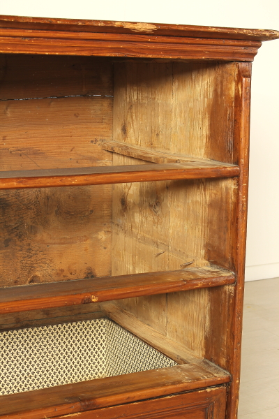 Canterano quattro cassetti retto da piedi a mensola. In origine probabilmente laccato.