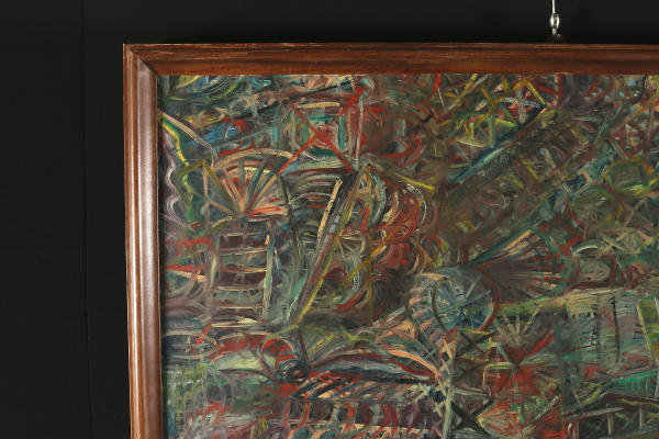 Olio su tavola. Composizione astratta senza titolo.Con cornice.