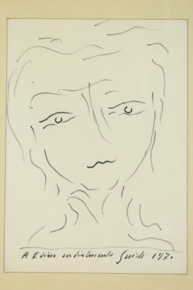Pennarello su carta. Dedica con firma e data (1970) in basso. In cornice con vetro.