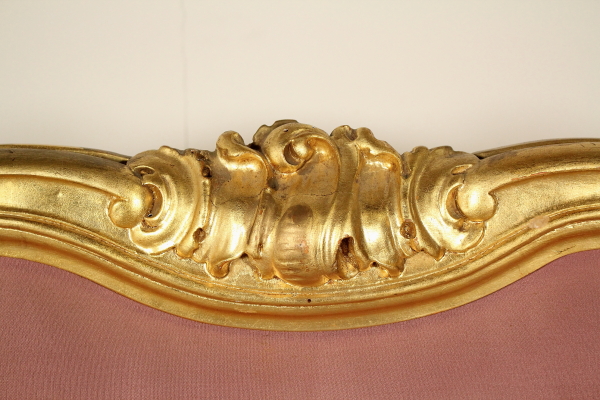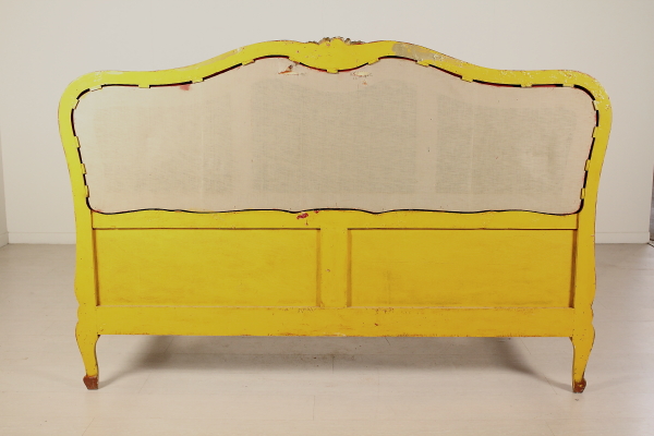 Dalla linea mossa e intagliata, dorato con pannello imbottito. Misure interne 159.5x197.5