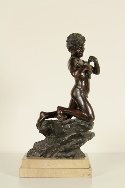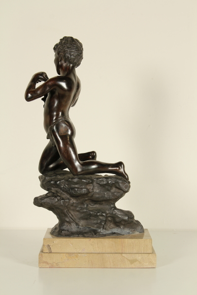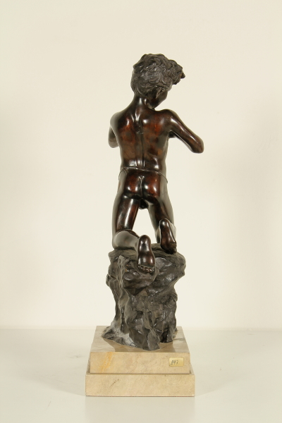 Bronzo su base in marmo raffigurante un pescatore sullo scoglio. Firma incisa.