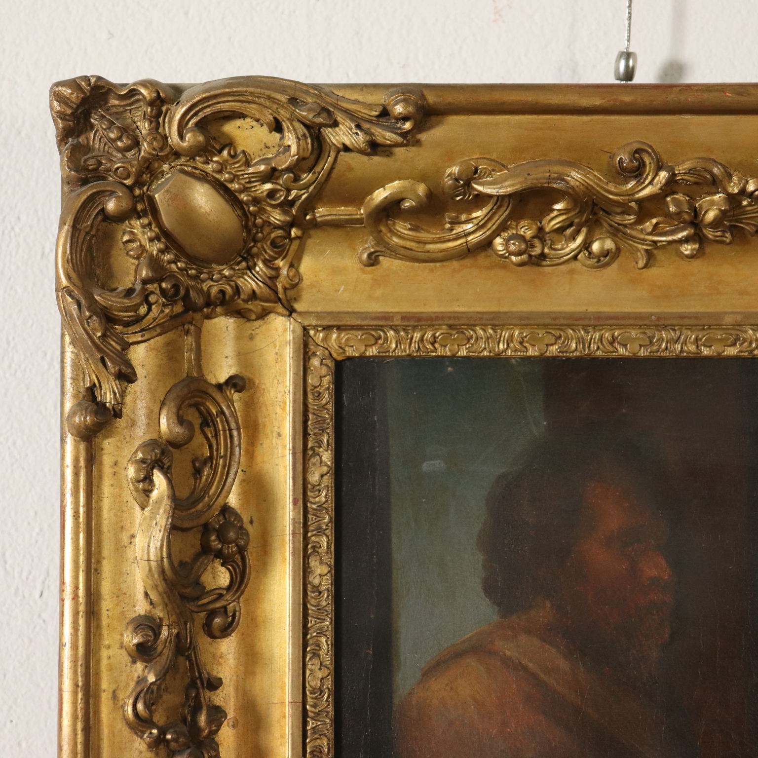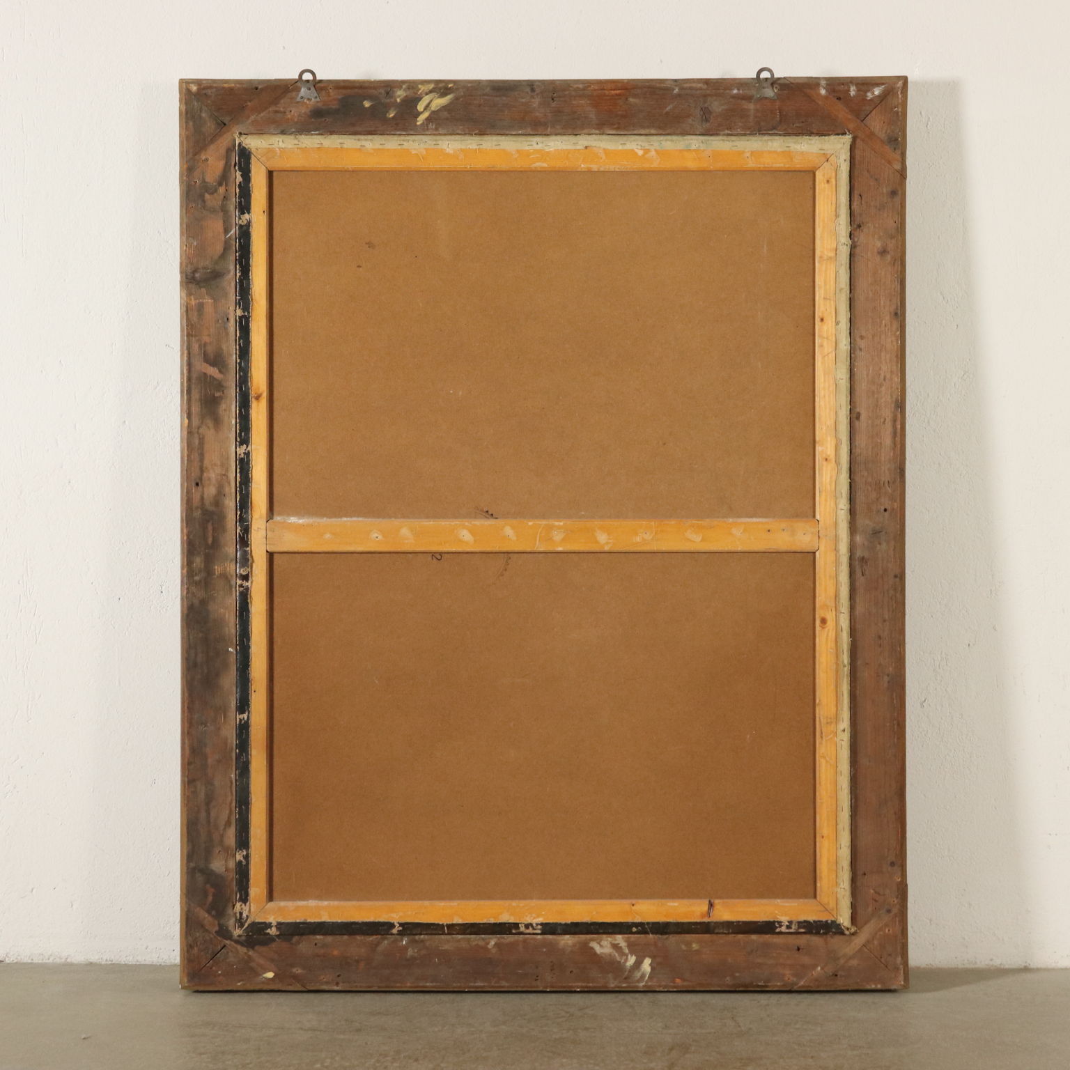 Olio su tela. Si tratta di una bella copia dalla "madonna del Divino Amore" dipinta nel 1517 da Raffaello e bottega, ora conservata al Museo nazionale di Capodimonte. Rispetto all'originale, su tavola, la tela è leggermente più piccola, di circa 10 centimetri, su entrambi i lati. Nella Sacra Famiglia, insieme alla Madonna con Gesù Bambino, compaiono San Giovannino e Sant'Anna (secondo alcuni studiosi si tratterebbe invece di Santa Elisabetta), con S. Giuseppe che assiste in disparte sullo sfondo. Il gruppo è composto secondo un'innovativa disposizione in diagonale, imperniata sulla gamba sinistra distesa della Madonna, lungo la quale si allineano poi il volto di Maria, quello di Gesù e di S. Giovannino; Gesù è proteso verso la Croce sorretta dall'altro bambino, a voler ribadire la sua accettazione del destino della Croce. La figura presente ma marginale di Giuseppe ne ribadisce il ruolo di protettore della Sacra Famiglia. Il dipinto è presentato in cornice dorata coeva.